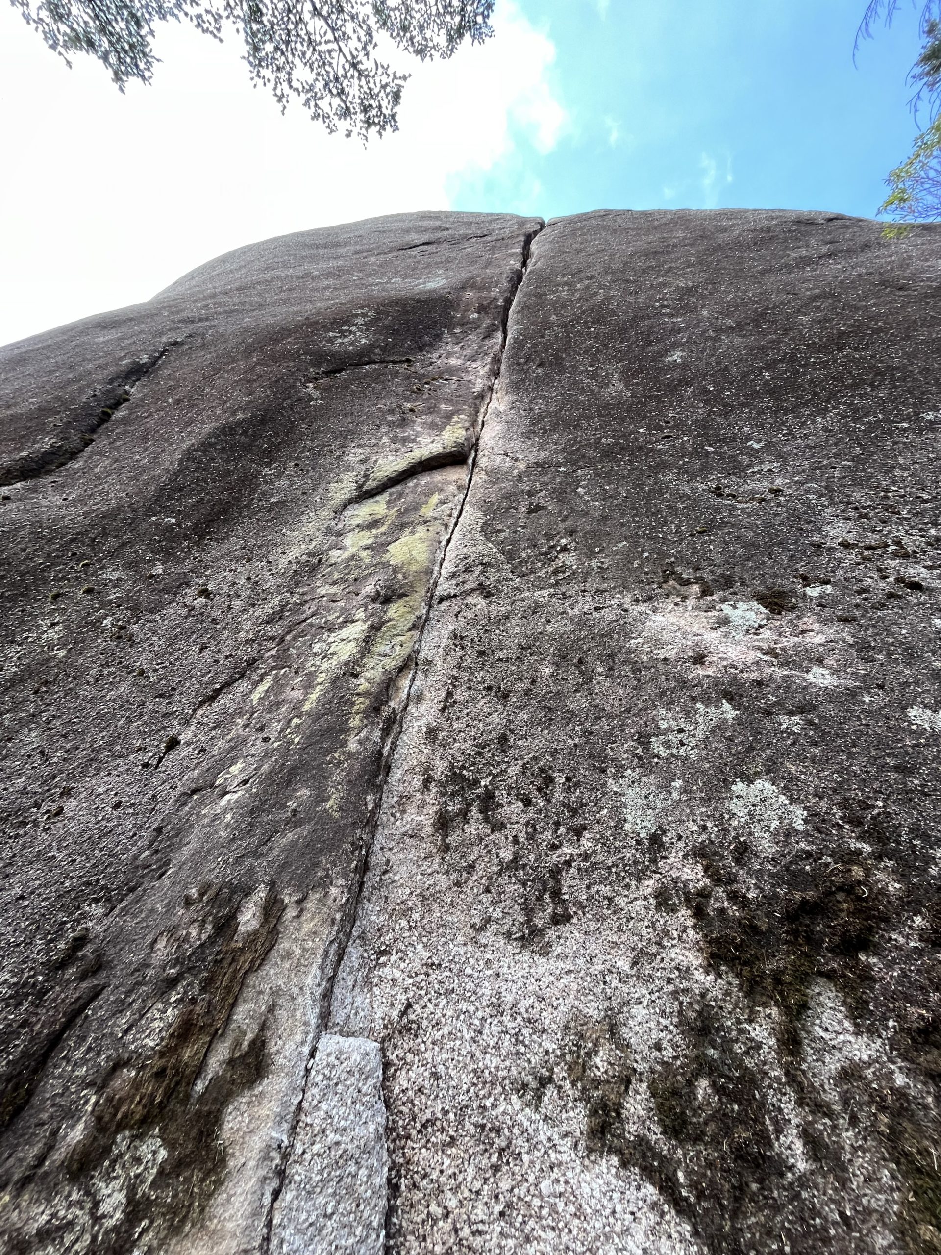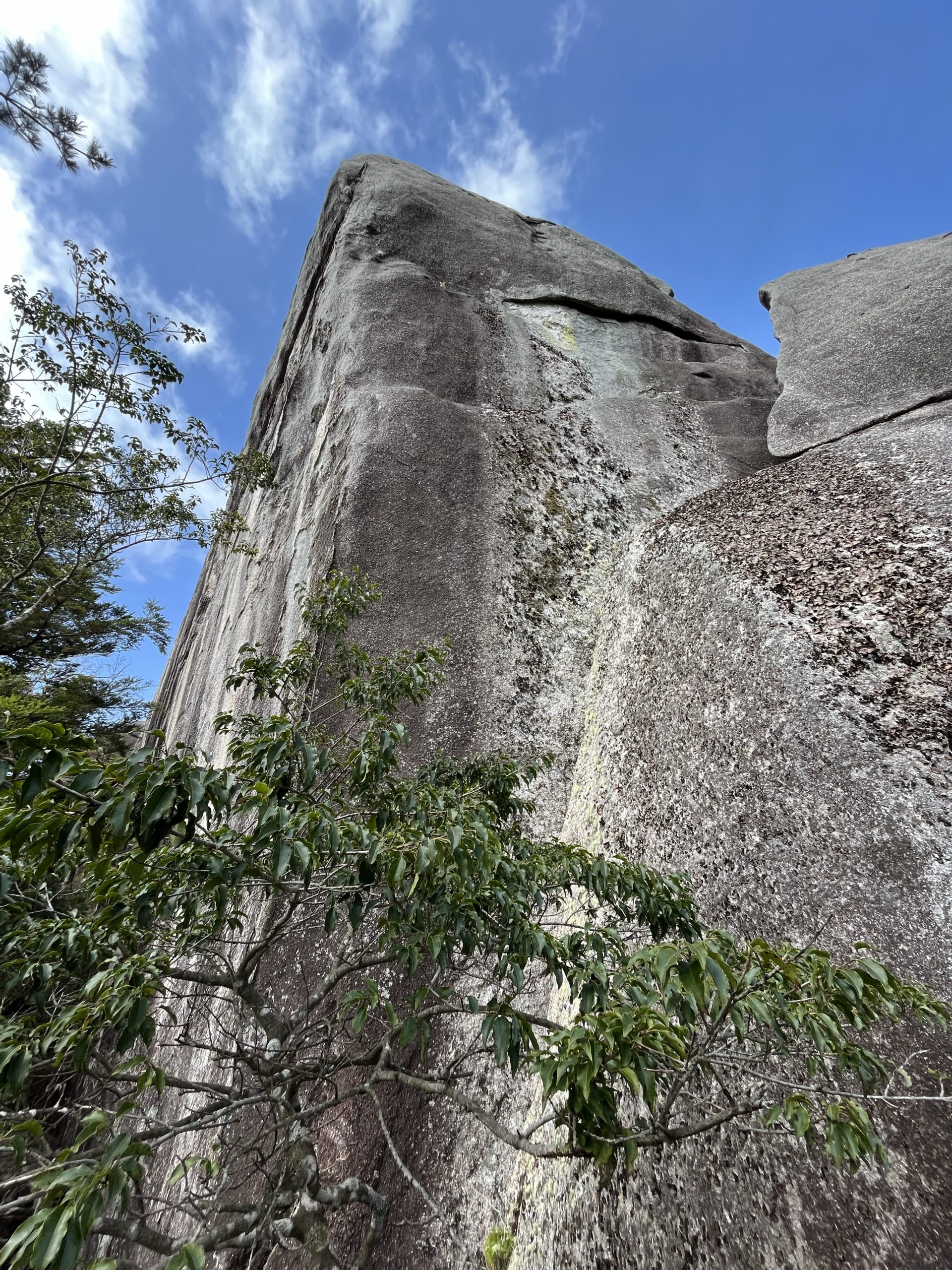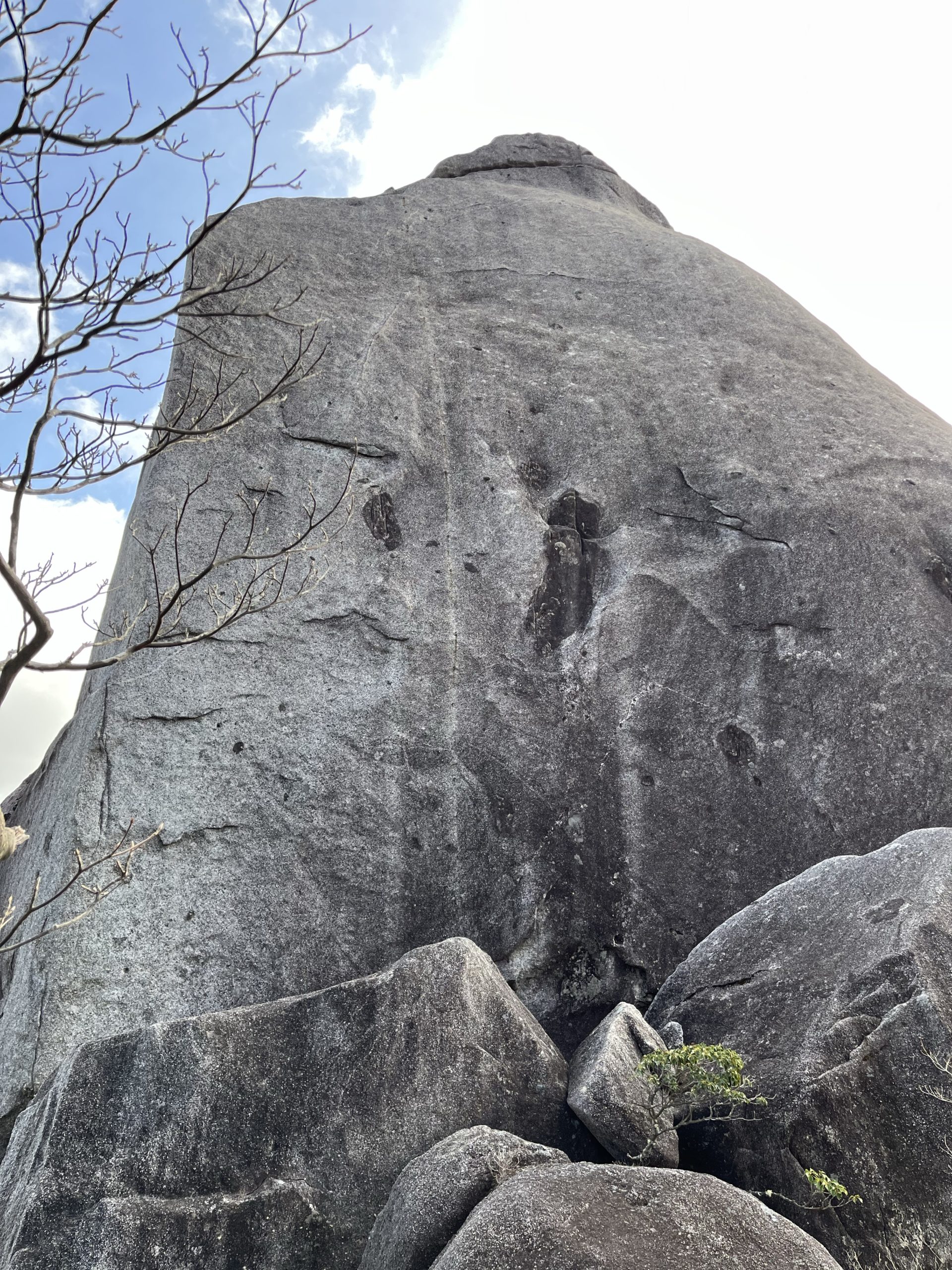 坊主岩の下から坊主岩を見上げると、登れるルートを発見した。