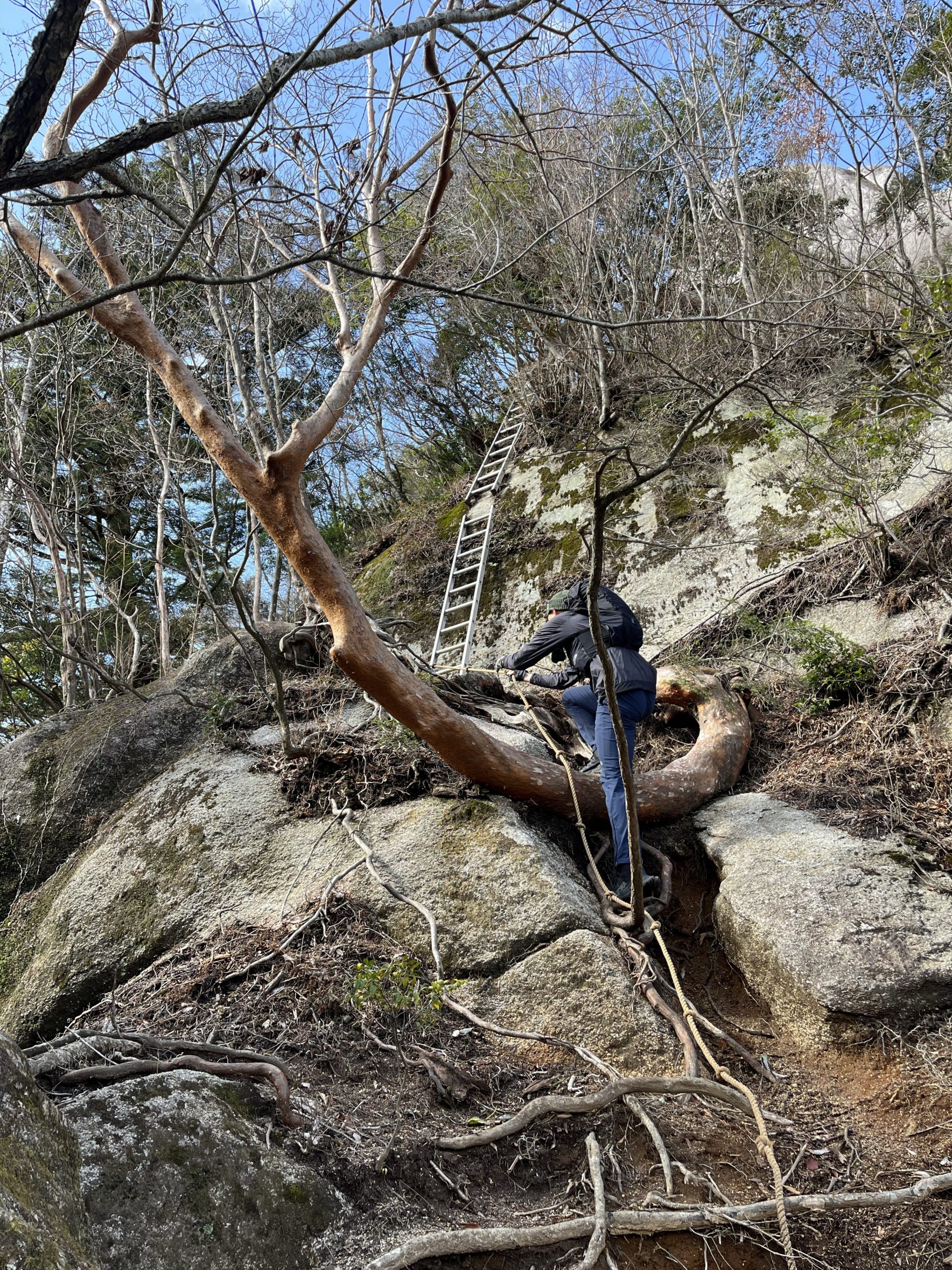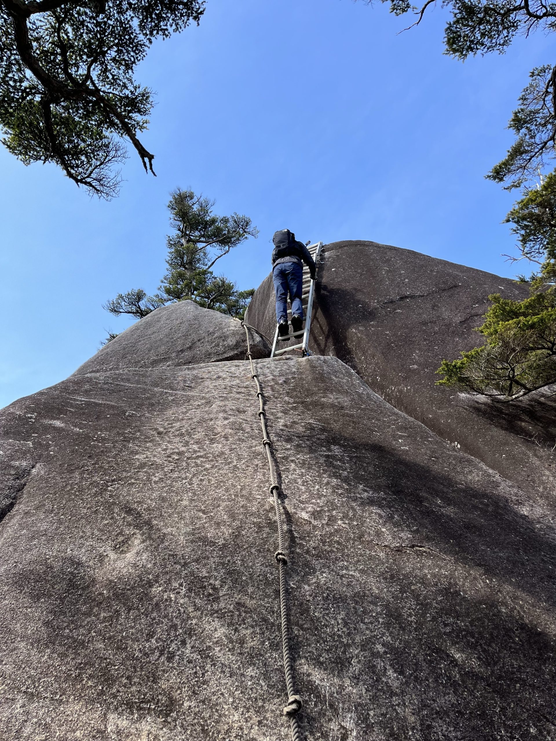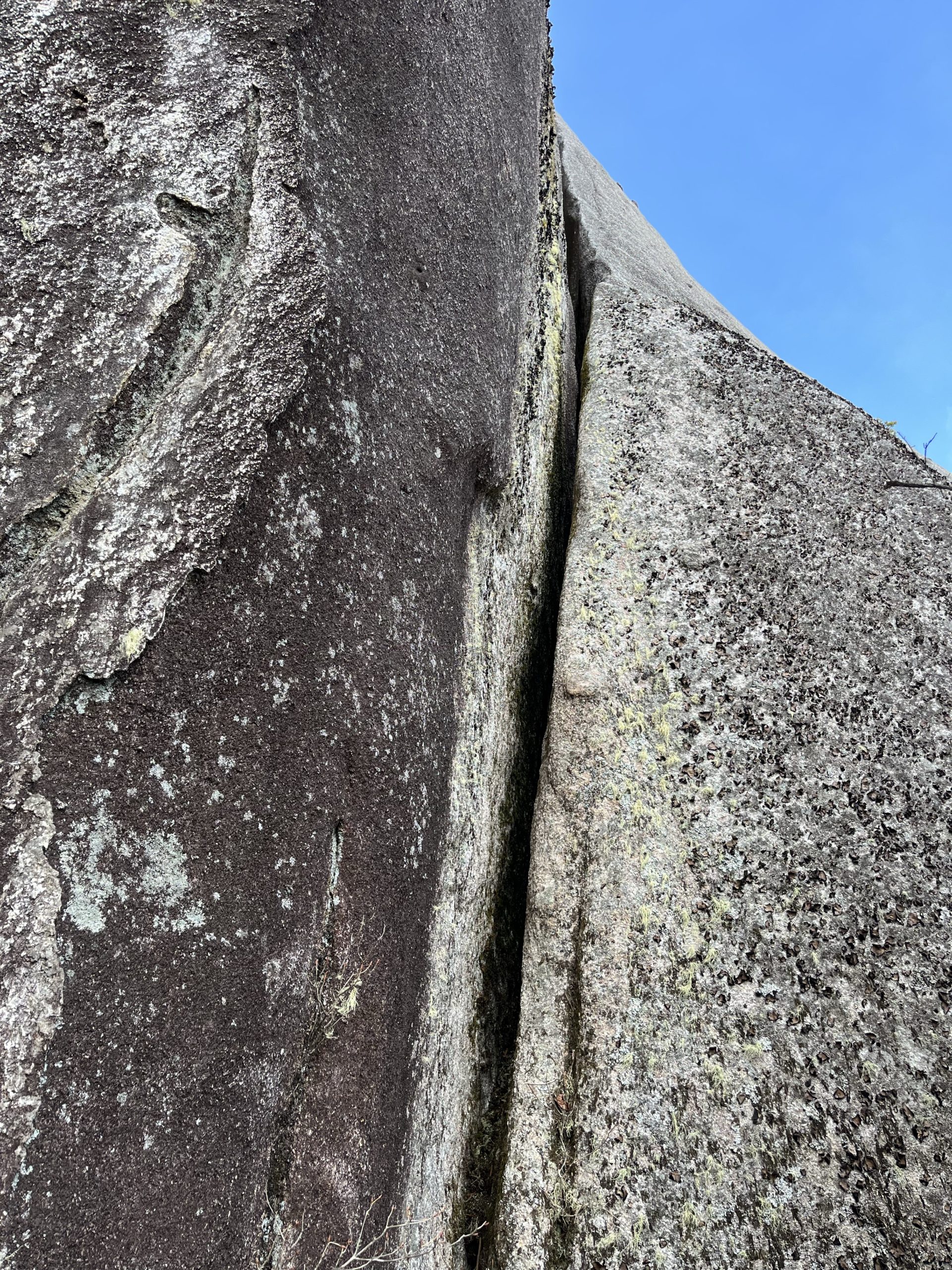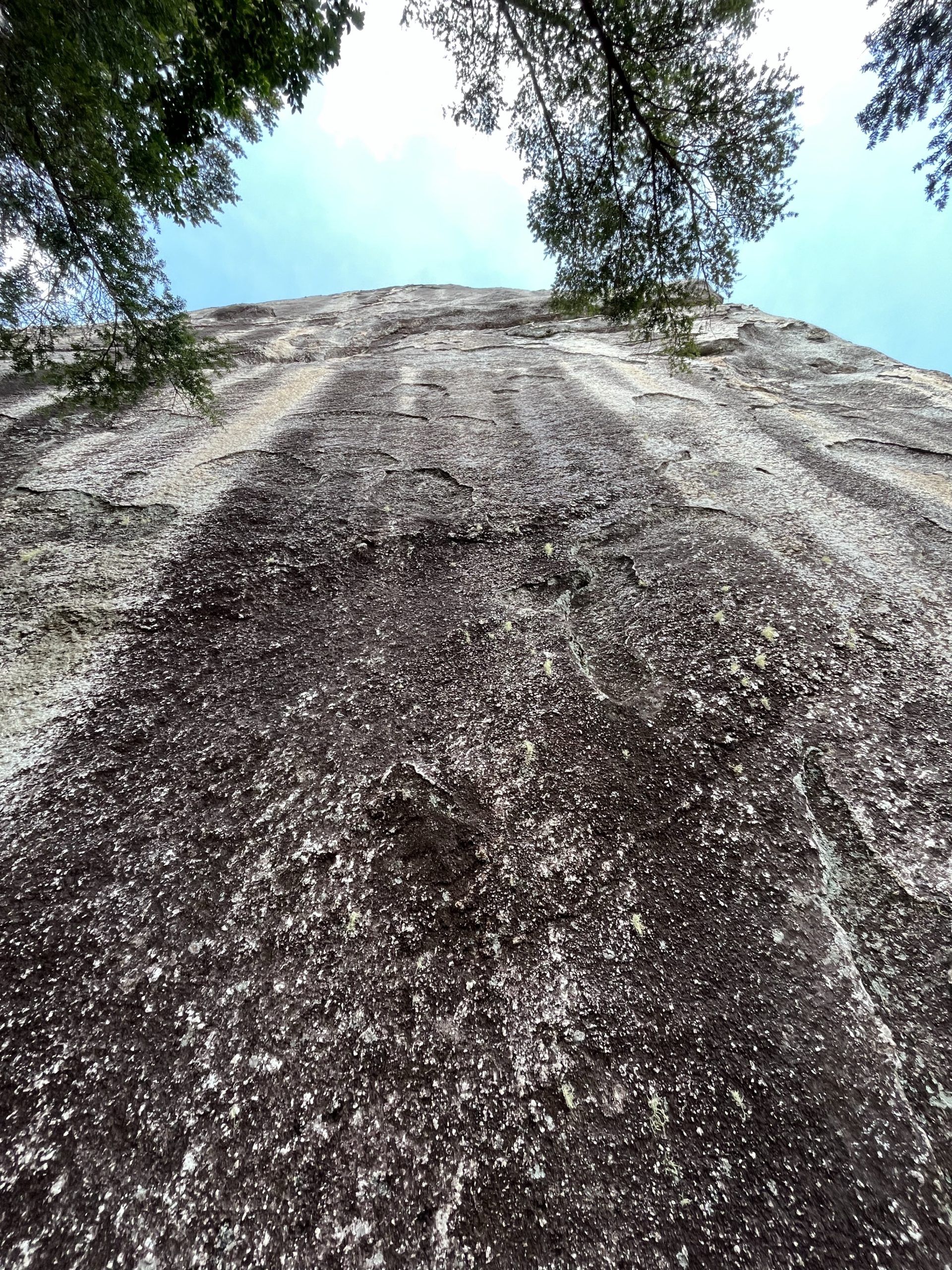 坊主岩の下から坊主岩を見上げると、登れるルートを発見した。