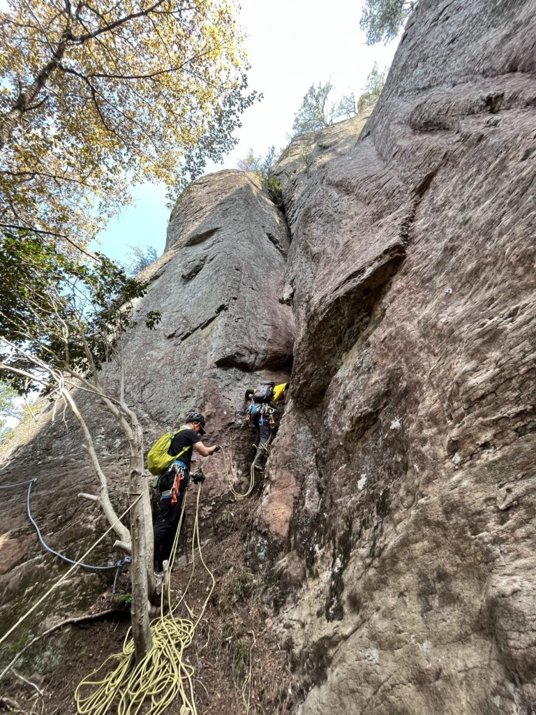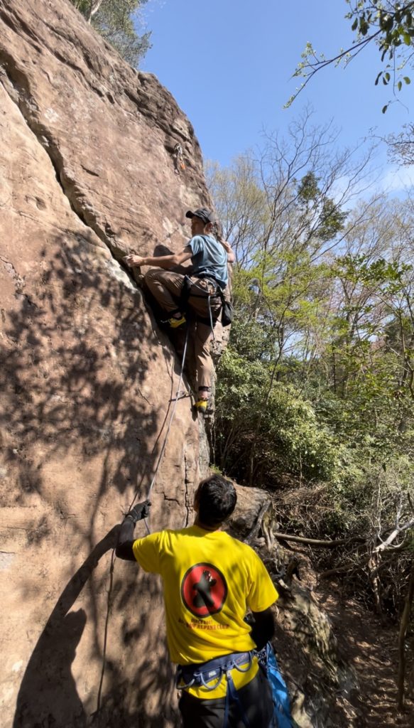 2ピッチ目を登るバディーの医大生みっつー。