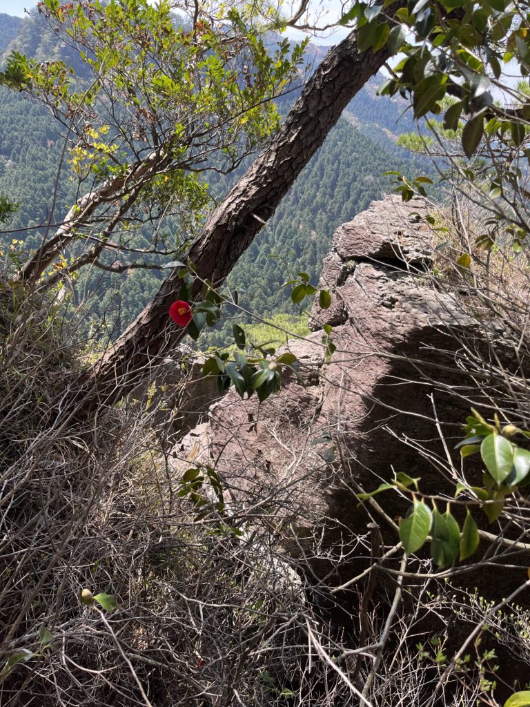 3ピッチ目は短いが油断はできない。終了点には綺麗な椿が咲いていた。