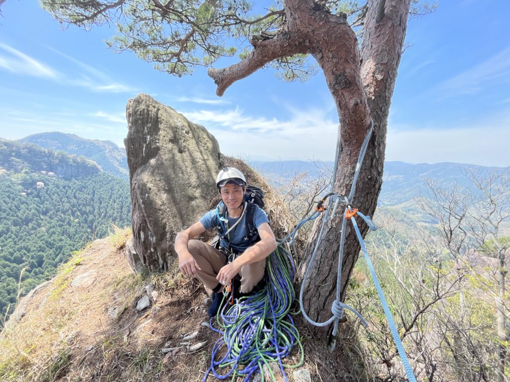 6ピッチ目を登り、ポーズを決めるみっつー。