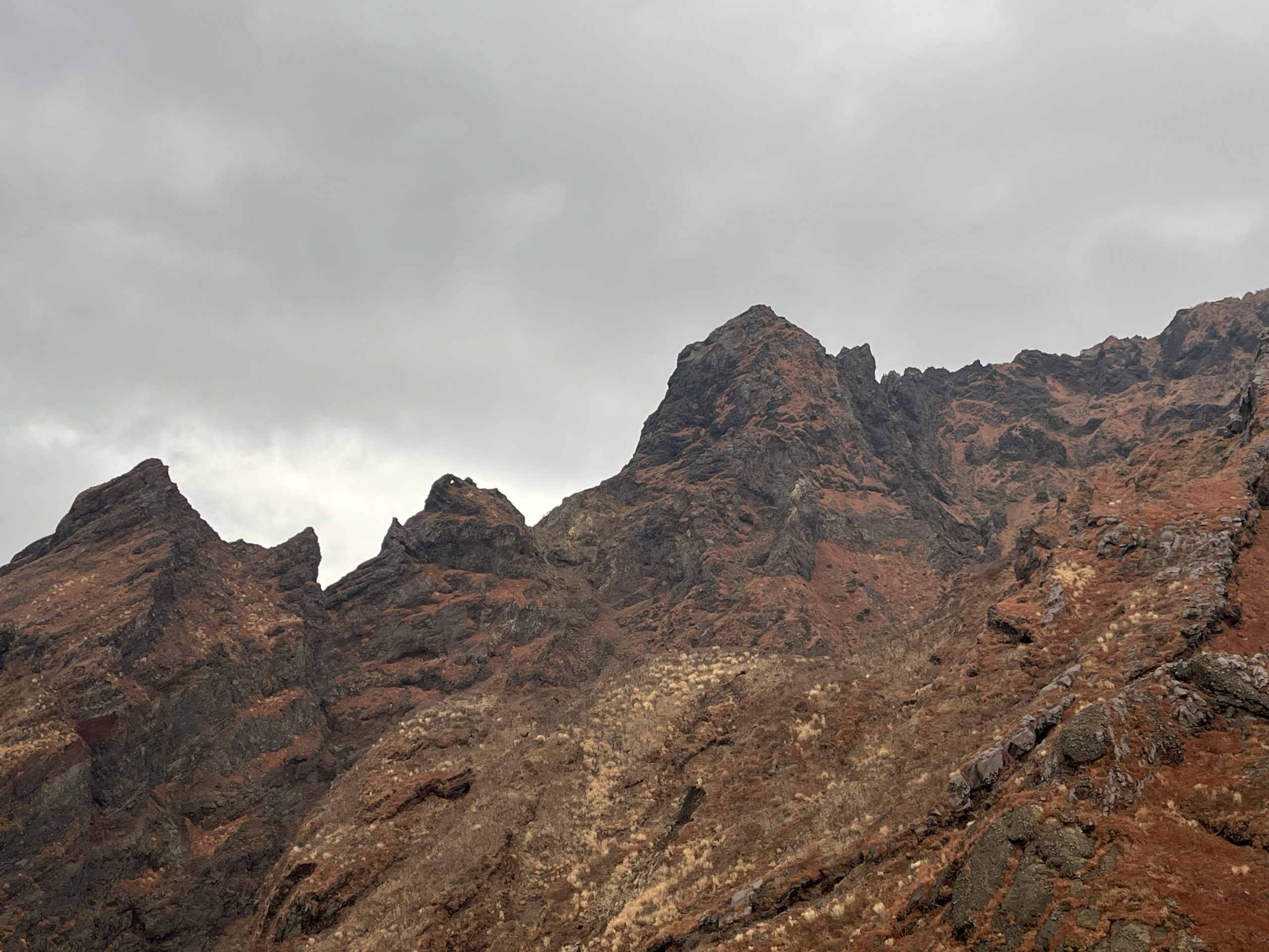 岩は脆く、3点支持もままならない箇所がいくつもあり、上半身よりも大きい岩がゴロッと崩れ落ちる。