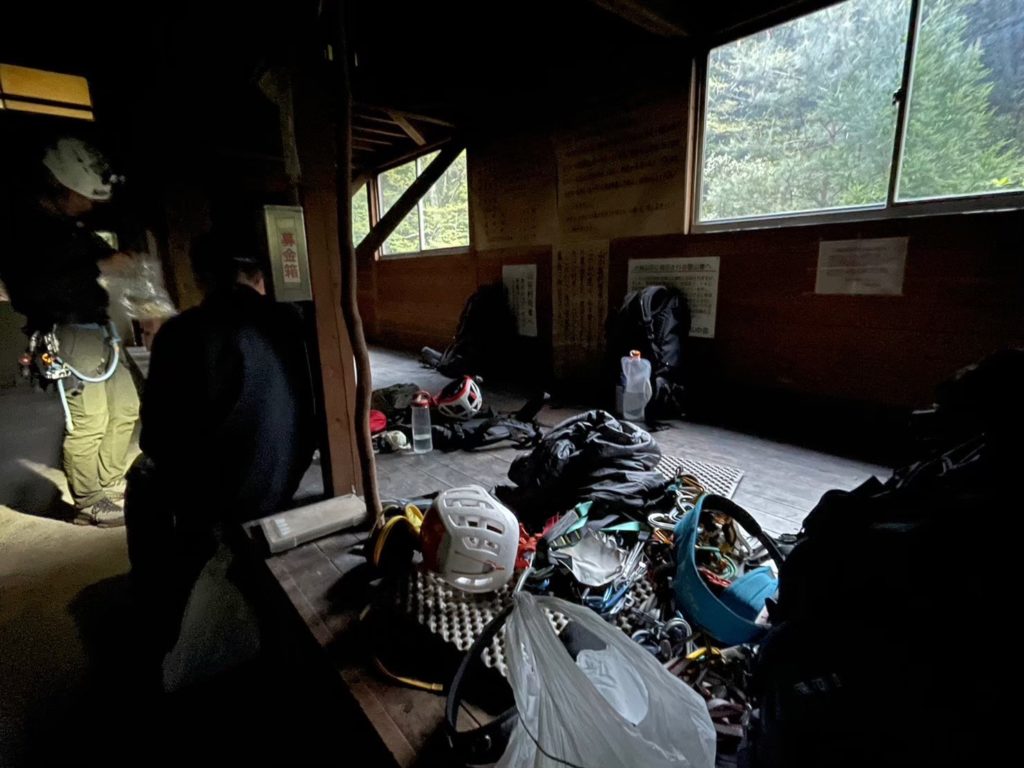 5:30蜘蛛の糸取付き 準備 行動食・飲料・シューズをザック1つにまとめる